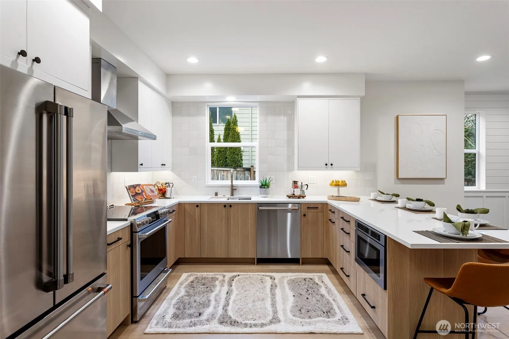 Discover elevated modern living in this stunning new TCL Construction build, perfectly situated in Rose Hill. This 2-bedroom, 2.25-bath residence features a thoughtfully designed open-concept layout that seamlessly blends contemporary style with everyday comfort. Showcasing Northwest Contemporary architecture, the home is enriched with premium finishes and abundant natural light. The main floor boasts a chef-inspired kitchen with a spacious seating island and high-end appliances. Upstairs, the serene primary suite offers a walk-in closet and a spa-like ensuite bath. Just minutes from downtown Kirkland. 2 dedicated parking spaces with EV charging completes this exceptional home!