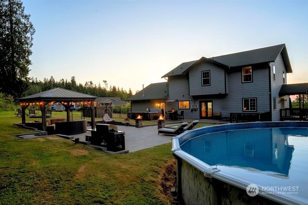 View this rare & unique 2 story home w/gorgeous water views & beautiful sunsets. This spacious 4 bed plus Office/Den, 3 bath home sits on over 1 acre with a back yard to die for, featuring a hot tub, above ground heated 7′ pool, skate board ramp, basketball court, 2 playhouses, a zip line, lighted Gazebo w/power & phone charger ports, dog run, & fire pit. It’s simply a dream backyard with great outdoor space just perfect for entertaining. The home has been well maintained,& features a spacious kitchen w/new farm sink, & breakfast bar, nice size bedrooms, oak hardwood floors, tile in bathrooms, kitchen & laundry room, a beautiful stair case, free standing propane stove in family room, tons of storage, including 2 outbuildings, & RV parking.