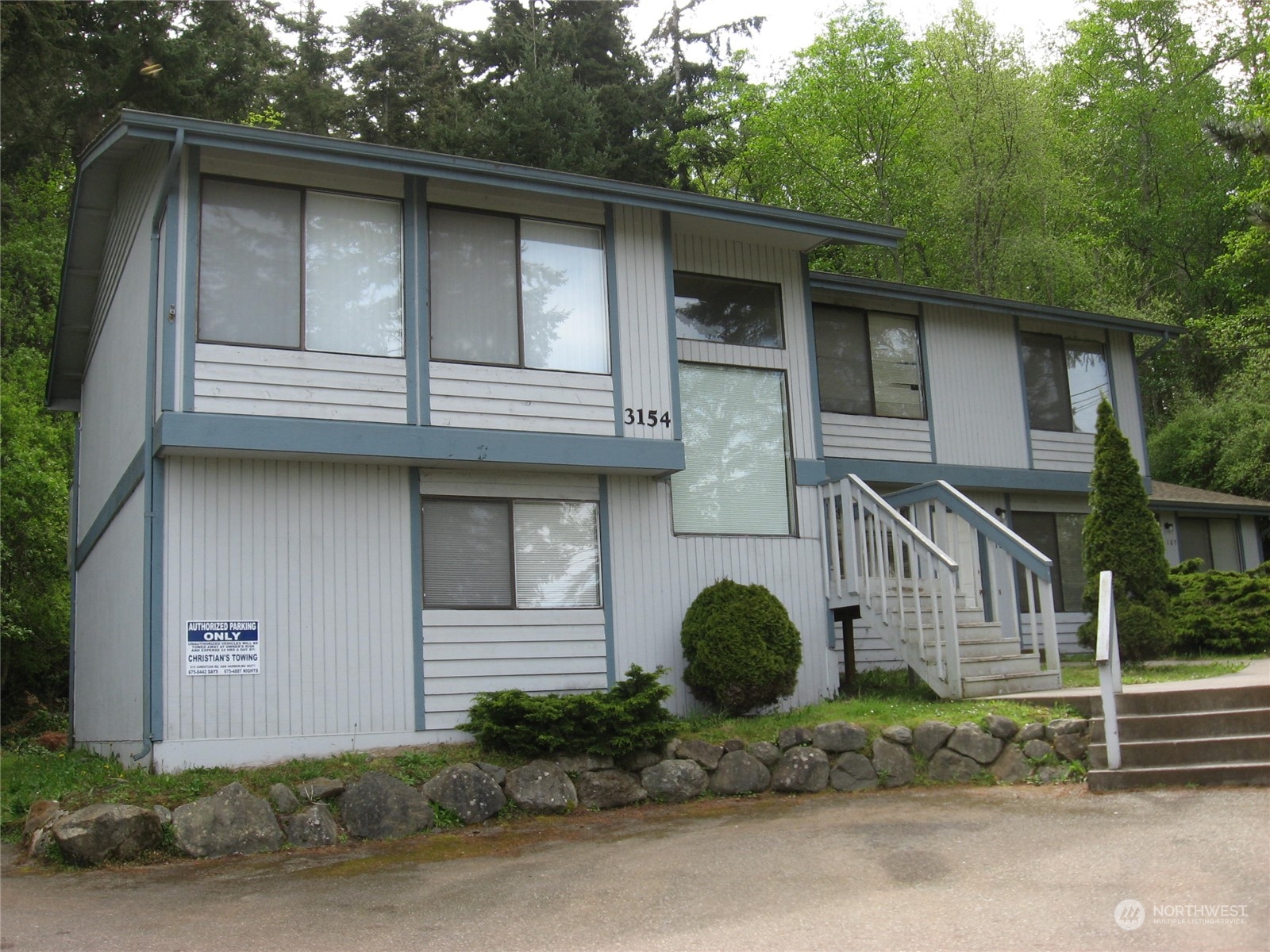 Perched with a view over the Naval base and Puget Sound this 4-plex with new roof this year has always enjoyed low vacancy being 5 minutes from the Naval base. One 2 Bdrm 1.5 bath townhowse w/washer-dryer hookups and three 2 bdrm 1 baths with stacked w/d. Could make and enjoyable owner-occupied investment. Septic system and community water offer low expense.
