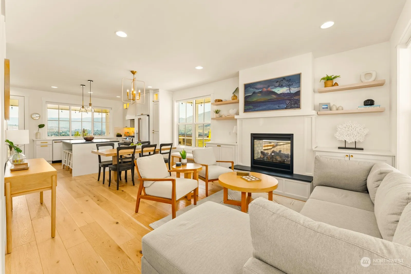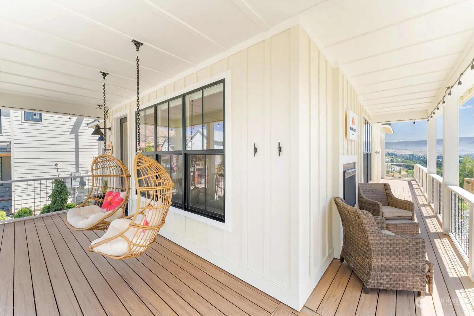 Welcome to paradise! Nestled among the sun-drenched shores of Lake Chelan, this luxury lakeside property boasts 2,100 SQFT, 4 beds & 4.5 baths. The open floor plan is bathed in natural light, creating a warm & inviting atmosphere. The gourmet kitchen is a chef’s dream, featuring high-end café line appliances & elegant finishes. The top floor offers 3 private suites. The basement includes a bunk room, media room, & full bath. Step outside onto the large wrap-around deck, indoor/outdoor fireplace, BBQ grill, & seating. The lower deck leads to a turf patio with a fire pit among the picturesque vineyard. The Lookout offers a private waterfront with sandy beaches, a marina, pools, parks, playgrounds, sports courts & on-site rental management.