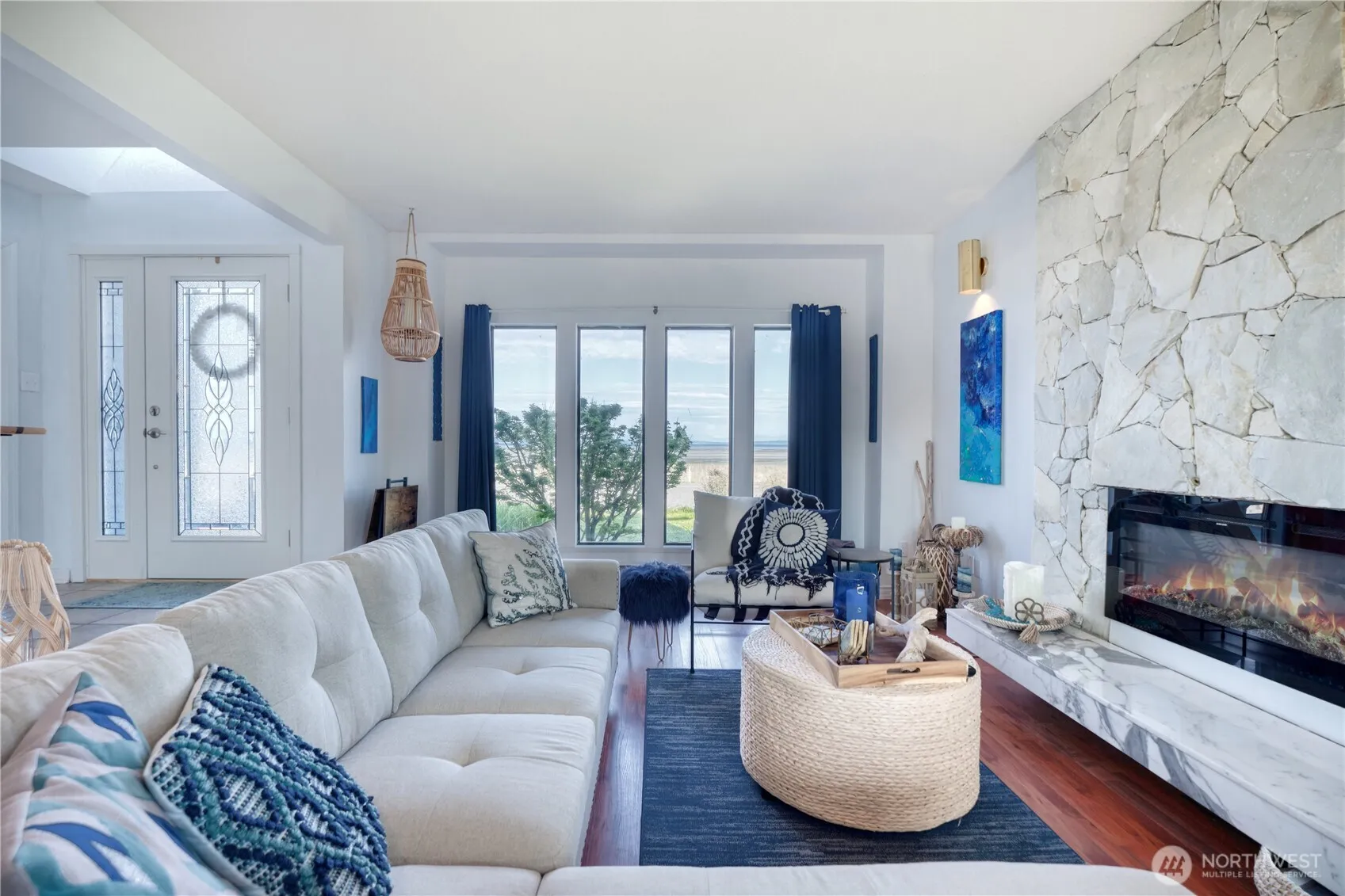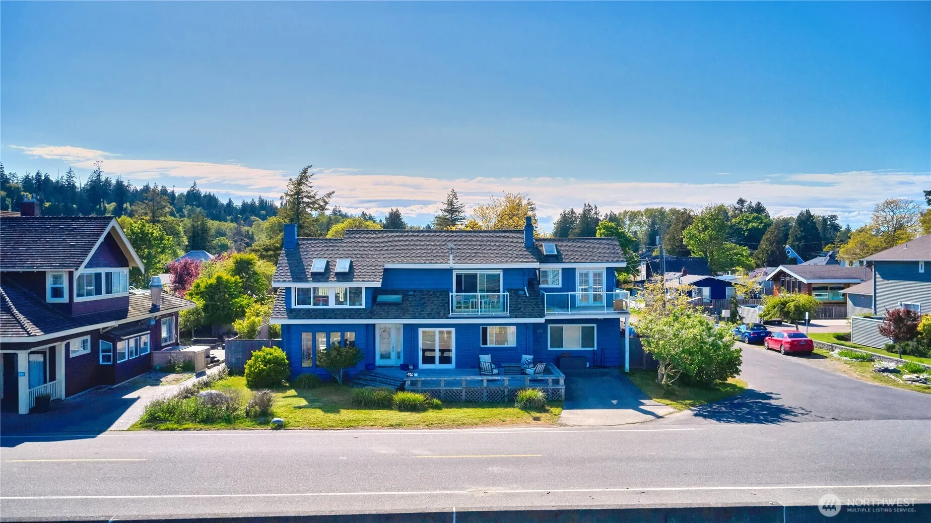 Welcome to your coastal getaway in the heart of Maple Beach. This updated home offers sweeping water views, a flexible layout and modern upgrades—all just steps from the shoreline. The light-filled open floor plan features fresh paint, new windows, and storm doors that frame stunning views. A cozy masonry fireplace anchors the spacious living area, which opens onto expansive decks. The vaulted primary suite includes a private deck and ensuite bath for a peaceful retreat. A bonus studio with a separate entrance offers flexible use as a guest suite, office, or creative space. Set on over 7000 sqft lot with 80 feet of frontage, this move-in-ready property combines comfort, charm, and incredible location in most scenic neighborhoods.