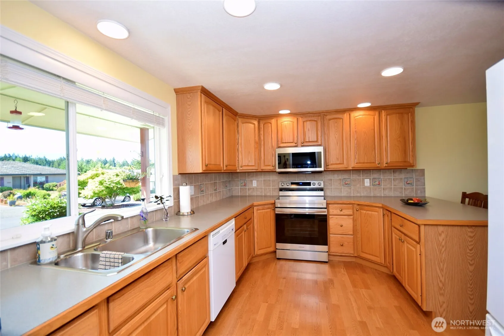 Beautiful Brittany Lane views of valley, mountains and partial of the Strait of Juan de Fuca & Mt Baker. You will love looking out the windows or sitting on the deck or porch and watching the ever changing sky & views. Pure peace. Lovely, updated home with views of the Olympic Mts from the front rooms, & trees & Strait from the back. 3 bedrooms, 2 baths & half off laundry/garage. Living room, Family room & den/dining room. Lots of options. Back yard is terraced and ready for all your favorite plants or garden beds. Hardwood, cork floors in bedrooms & tile in entry and den/dining. Buyer has option to purchase lot to the north.
