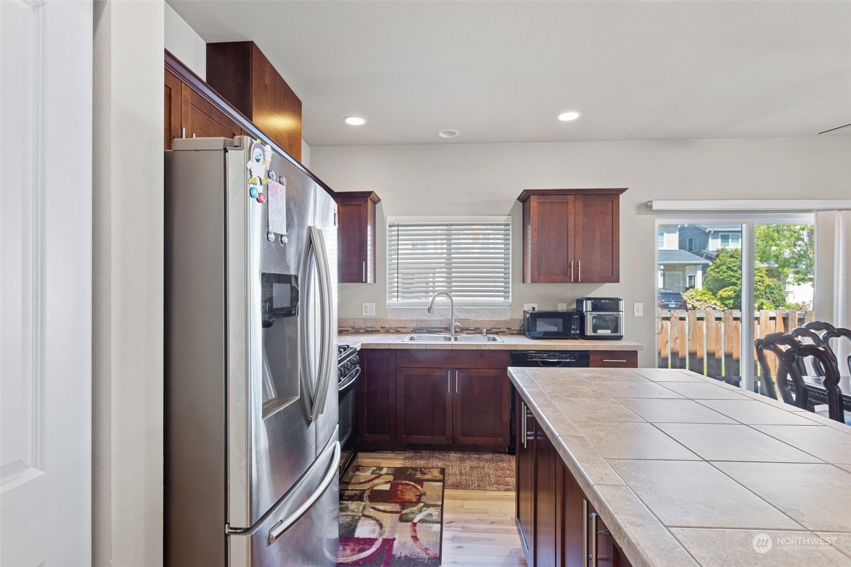 Welcome to this well maintained 2013 built open concept home in Monterey Park. Located on a corner lot with a back entrance alley leading to the 2 car garage. The upgraded Kitchen has tile counters and island large enough for seating. Kitchen also overlooks dining area and nice sized family room. Large master ensuite and 2 additional good-sized bedrooms. Convenient laundry located upstairs. This home also has tankless hot water for constant hot water. A low maintenance concrete yard. Just a short walk to trails, river and community playground. Close to freeways, schools, bus routes, parks and lots of restaurants and shopping nearby. Kent station nearby also for commutes and restaurants/shopping.$5k seller credit for interest rate buydown!