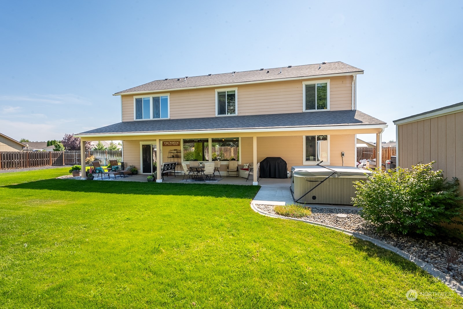 Beautiful, 5 bedroom, 3 bath, one owner home, move in ready. Exceptionally landscaped yard, RV hook up & parking, hot tub, storage shed and extended covered back patio. Main floor has spacious entry, light filled office, open concept style kitchen, dinning, great room and nice size bedroom next to full bath. 3 bedrooms, spacious primary with 5 piece ensuite, large bonus room, and laundry room all on the 2nd floor. Dining area has sliding doors lead out to back yard great for entertaining. Must see home. Call for a tour today.
