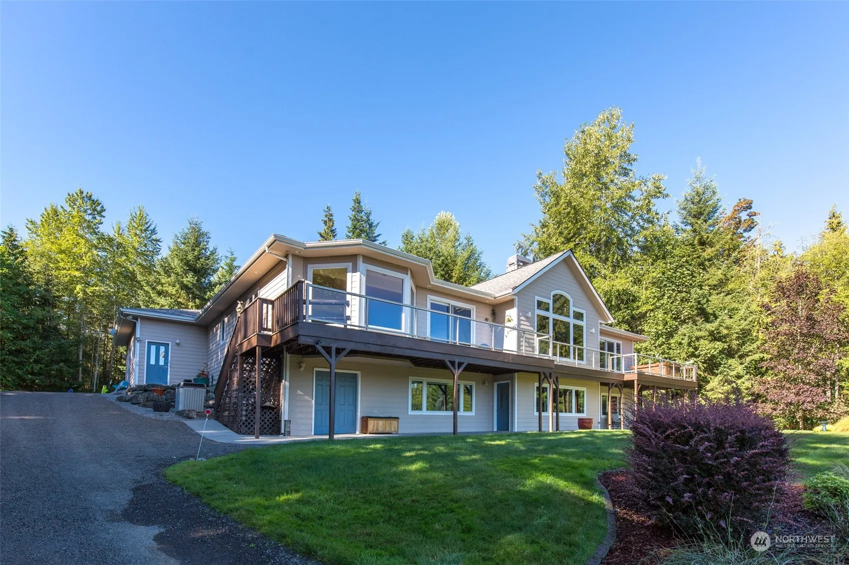 Beautifully appointed 3 bed, 3.5 bath nestled in the woods on 4.69 private landscaped acres w/ views of the Straits & Mt Baker. Entertaining guests is a breeze with over 6500 sqft of living space that includes a game room complete w/ full-sized pool table, ping pong & shuffleboard tables, wet bar & wine fridge. Relax & enjoy your favorite movie on the big screen in your own personal movie theatre complete w/ a 7×10 ft movie screen. A multi-tiered pond provides a home to birds, deer & other wildlife. Have company arriving for the weekend? No problem! Whisk them away to your private guest cottage w/ 800sqft of living space, double-sided fireplace & private decks. Sold w/a separate 5-acre adjoining parcel for almost 10 acres of idyllic wonder.