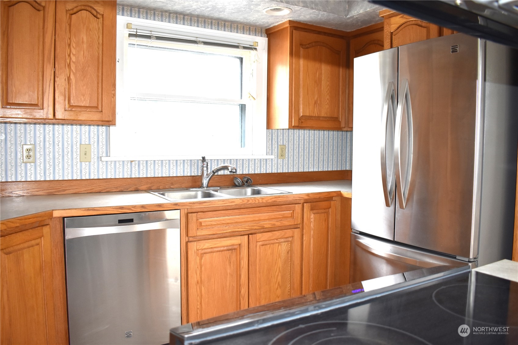 Cute 1258 sq ft. 2 bedroom, 1 3/4 bath home w/ partially finished 288 sq ft basement on large 1/3 acre lot. Living room boasts a cozy, gas fireplace. A gas forced air furnace also provides the heat. Outside is a nice patio area that is shaded from the evening/afternoon sun. Side yard that w/mature grapes also has plenty of room for your ideas. Additional detached 440 sq ft area unit in back with it’s own entry and bathroom that can be use as extra bedroom or converted into a rentable ADU. A big bonus is the large 30×48, 1440 sq ft. 3 bay shop with power and woodstove that has many possibilities including covered RV parking to rent. Large area for parking in the back. Very MOTIVATED seller. All offers considered.