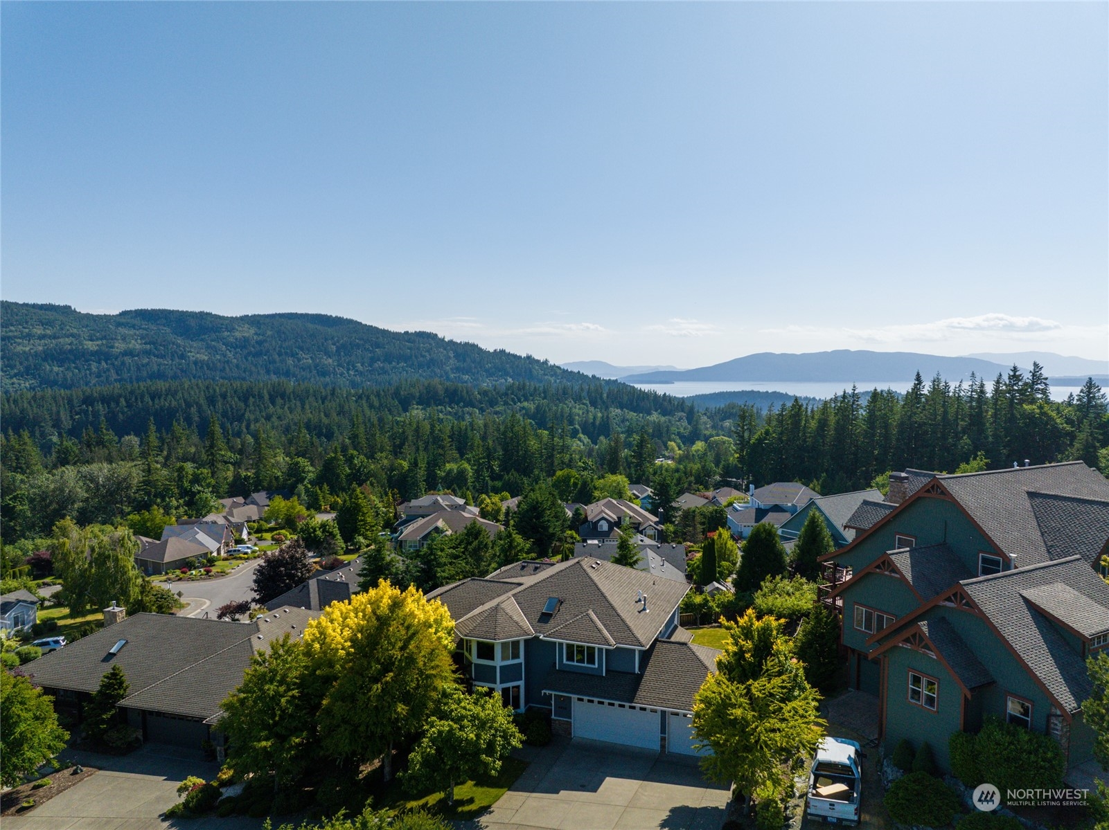LOCATION! Top of the world! Views of Bellingham Bay, Lake Padden, San Juan Islands & the Canadian islands beyond. Very quiet location on a dead end street. House is completely dialed in w/a 3 car garage, home office + 4 bedrooms. Primary Bedroom and bath have amazing views from the upper level. Kitchen, den and front deck all attached. Den with cozy gas fireplace. Fully fenced yard includes gardens, fruit trees (pear, apple, plum), blueberry bushes and more. Formal Dining with access to deck on south end. Huge laundry room + mature landscaping and great neighbors. Large under-house storage. Access to trails and Padden within walking distance and Fairhaven at the bottom of the hill. This one has everything you could dream of & more.
