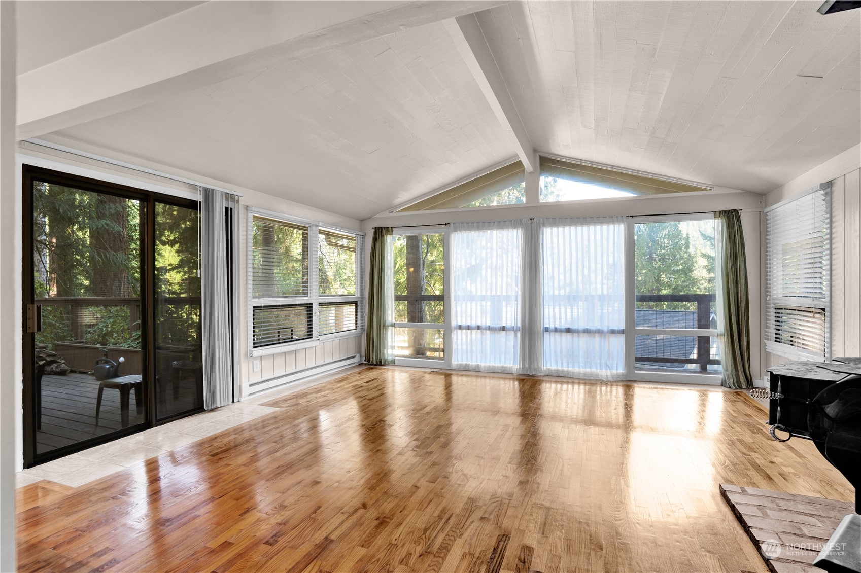 This home seamlessly blends indoor & outdoor living. Appreciate the serenity of the trees on the wrap-around deck. Large windows paint the living room in natural light, creating a seamless connection to the tranquil surroundings and offer a peek-a-boo hillside view. With a renovated kitchen + bathroom, and classic hardwood floors, this home offers a harmonious blend of tranquil living and updated interior. Just a short drive from Bellingham’s vibrant downtown, you’ll have easy access to eclectic shops, gourmet dining, and cultural attractions. Enjoy all the amenities this community offers: Golf Course, Parks, Trails, Pool, Lake Whatcom Beaches, Boat Launch, Marina, Tennis Courts, Dog Park, Club House, Health Club, Library, & 24/7 Security