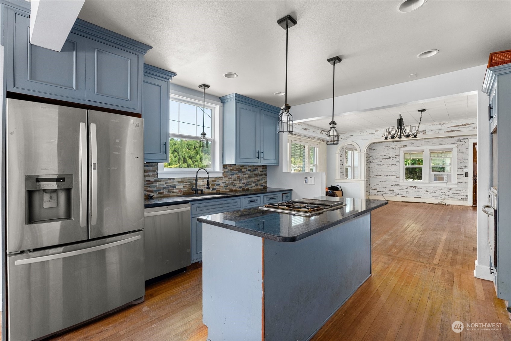 Welcome to this charming home close to Penny Playground, Baseball fields & Schools! Greeted with gated entry this fully fenced yard provides great outdoor entertaining with the oversized deck w/ pool. Inside, the hardwood floors flow through the main areas & new flooring in laundry room. The kitchen is a true highlight, boasting a stunning tiled backsplash, stainless appliances, & kitchen island. Accident shiplap walls and built-ins bring out the character in the home. The main level features a full bath w/ shower/tub combo, while the upstairs includes a 3/4 bath. Venturing to the 2nd floor, French doors open up to an additional living space. Barn doors reveal cozy bedroom.Additional storage available with the detached garage.