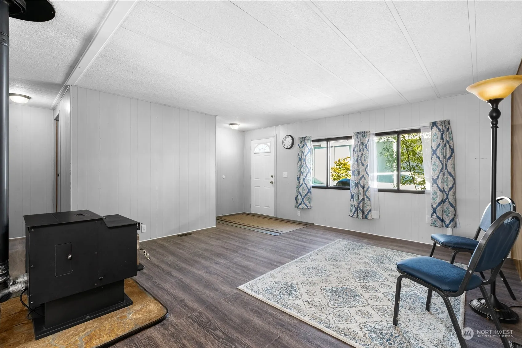 Escape to a riverside haven in this inviting home located within the all ages community of White River Estates. Modern touches include a shiplap wall, newer lighting and flooring. The primary bedroom has an attached 5 piece bath w/ a deep soaking tub and river views. A mud/utility room adds practicality. With a fully fenced yard and a two sheds, there’s ample space for your needs. You’ll also be able to embrace the joy of pet ownership as two pets are welcome here. The private neighborhood park includes a playground and basketball court. This is an ideal location with White River Trail being across the river, offering disc golf, a playground and off-leash dog park. Experience the tranquility of riverfront living in an affordable price!
