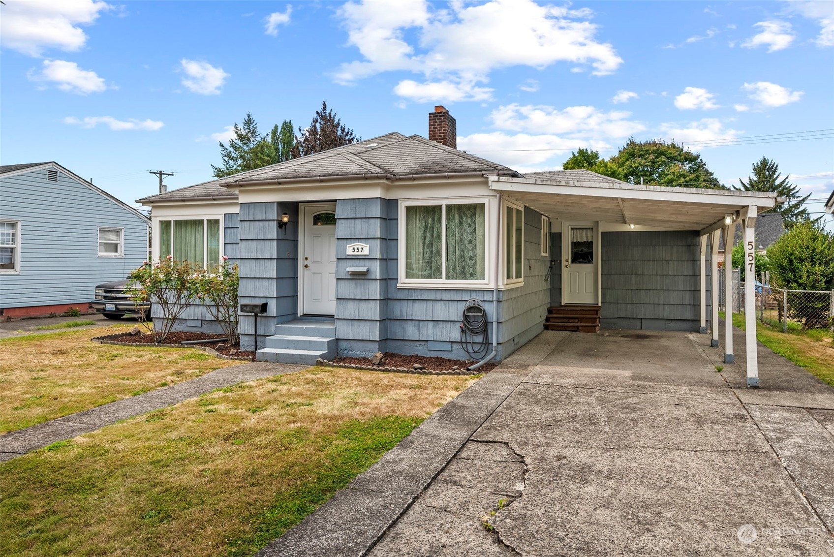 Come view this charming 3 bed 1 bath single story home near lake Sacajawea. Well maintained interior features a convenient floorpan, primary bedroom with a sliding glass door leading to patio, a formal dining room, A/C heat pump, and a fireplace. Outside you will enjoy a spacious yard, detached garage with work space, carport and a covered patio. Back yard is also fenced and has room for RV/Trailer Parking. This home is the perfect blend of comfort and convenience.