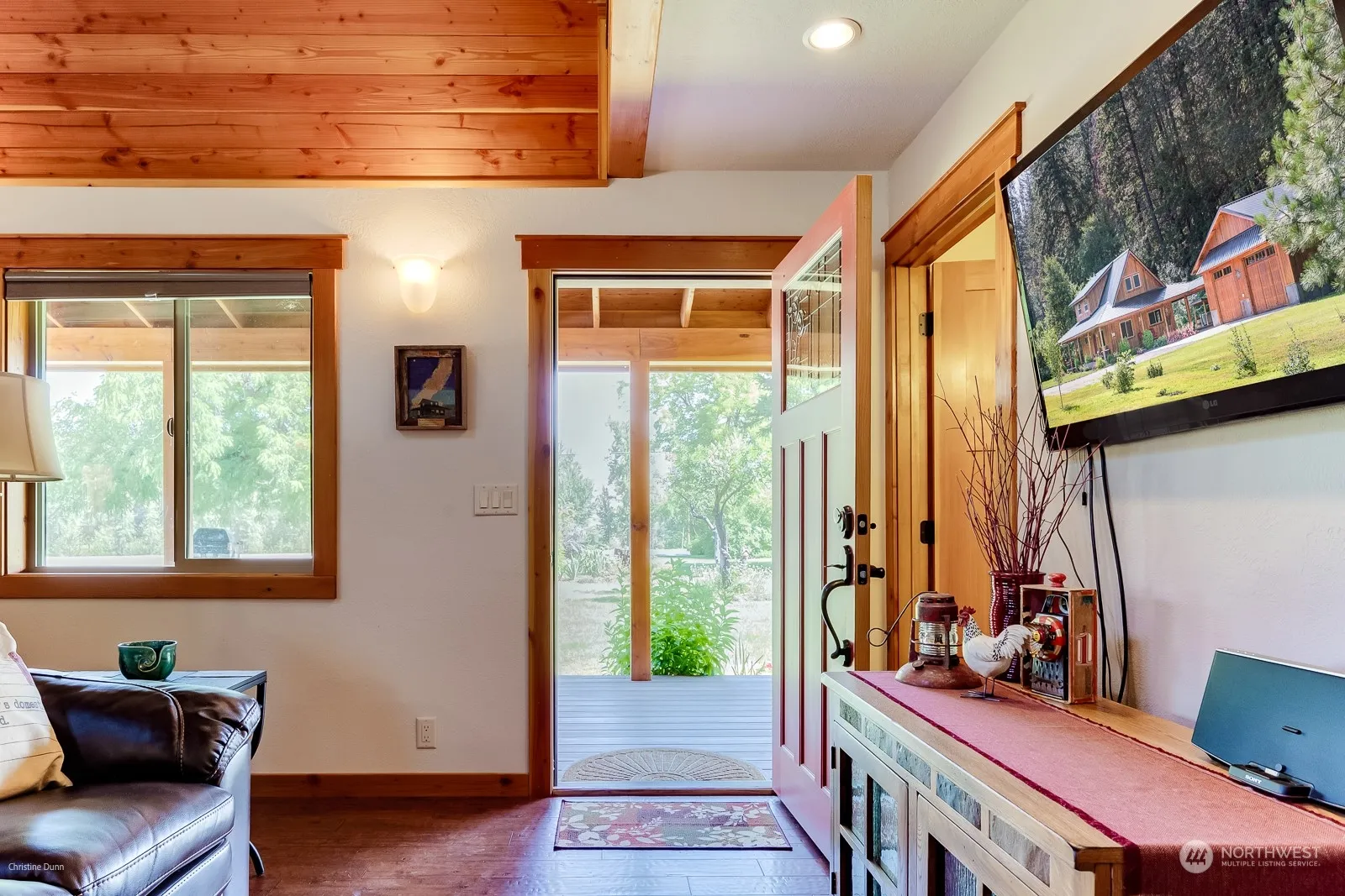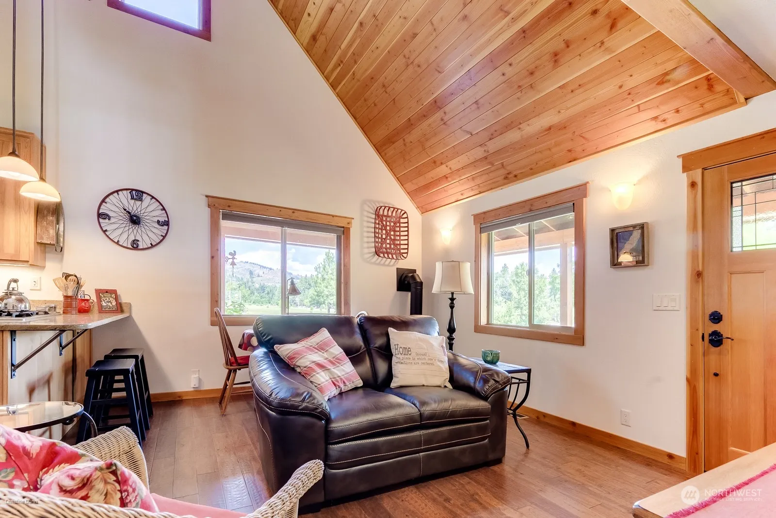 Beautiful custom-built home, located across from the Methow river and recreation. Thoughtfully designed landscaping with gardens, native trees & level grass for outdoor activities. A covered deck extends around the entire house allowing for year-round use. Vaulted ceilings, hickory cabinets, granite countertops and cypress floors. Large 1008 SF heated garage/shop with a covered walkway to the house. The garage/shop area is perfect for storing all your extra toys- RV, tractor, jet ski, yard equipment & vehicles dry, safe and secure. Custom-built fully insulated and heated Pump House. The property is minutes to town for shopping, dining and the local farmer’s market.Fireplace is a free-standing propane stove.