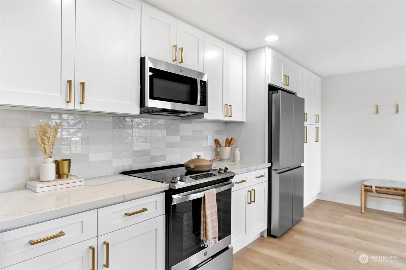 Welcome to this North Tacoma Home that has been thoughtfully remodeled with 4 bedrooms and 3 baths with designer finishes. Open main floor layout with living space that has large windows that let in an abundance of light with peek a boo views of the narrows & cascades. Fully remodeled kitchen with Quartz Counters, Custom Cabinetry and Stainless appliances. Main living space is extra cozy with a custom tiled fireplace & mantle. All new Millwork & Doors with LVP flooring throughout. Master bdrm has own private on suite with walk in shower. Don’t miss the Large deck and patio perfect for entertaining, fully fenced backyard with updated landscaping and Storage Shed. Great narrows neighborhood w/nearby shopping and just a few minutes to hwy 16.