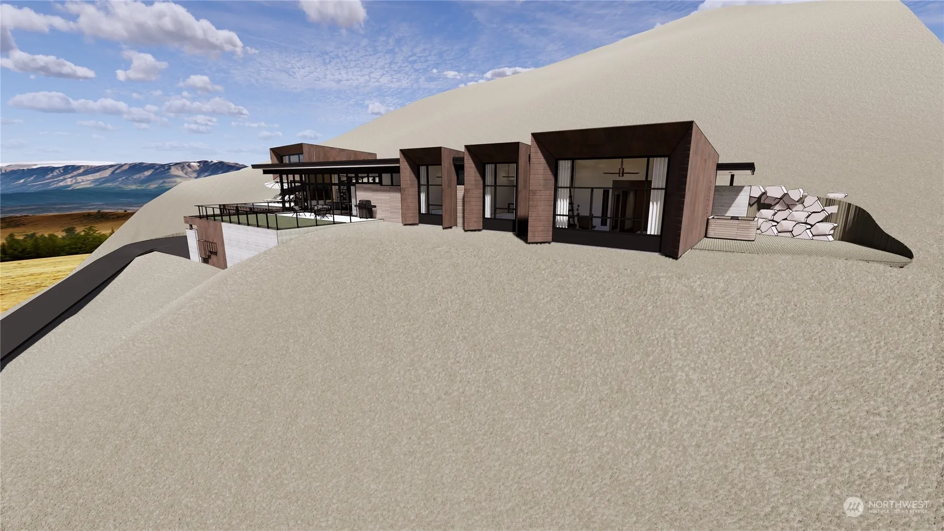Discover unparalleled modern living in this exquisite 3,275sqft new construction home in East Wenatchee. Nestled in the heart of natural beauty, this architectural masterpiece offers unobstructed panoramic views of the river and lush Wenatchee valley! The sleek and sophisticated design seamlessly blends indoor & outdoor living with its 24ft folding patio door – perfect for entertaining! Additional features include, brushed concrete flooring throughout, high end appliances, wet bar, ceiling fans, restful primary suite with attached bath, walk in closet & more! The true jewel of this property is the 40ft infinity-edge pool that seemingly merges with the horizon! Every detail has been meticulously crafted to provide both comfort and style.