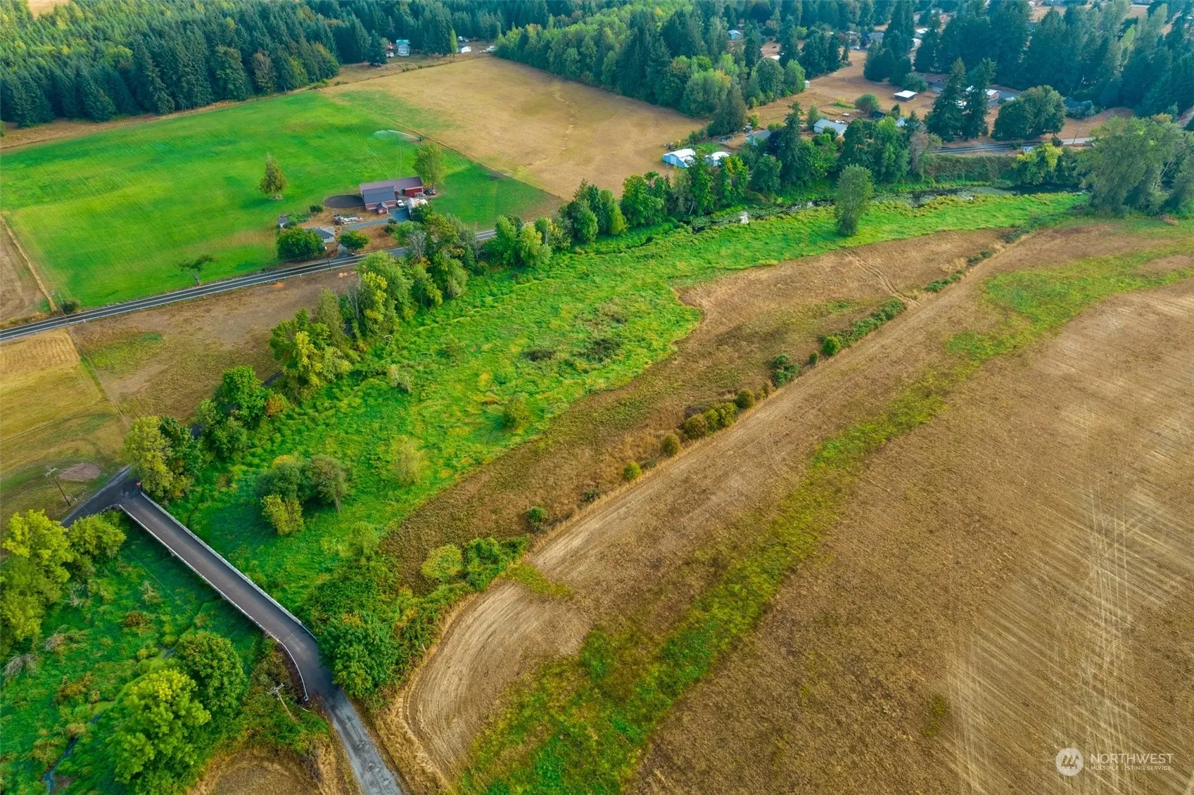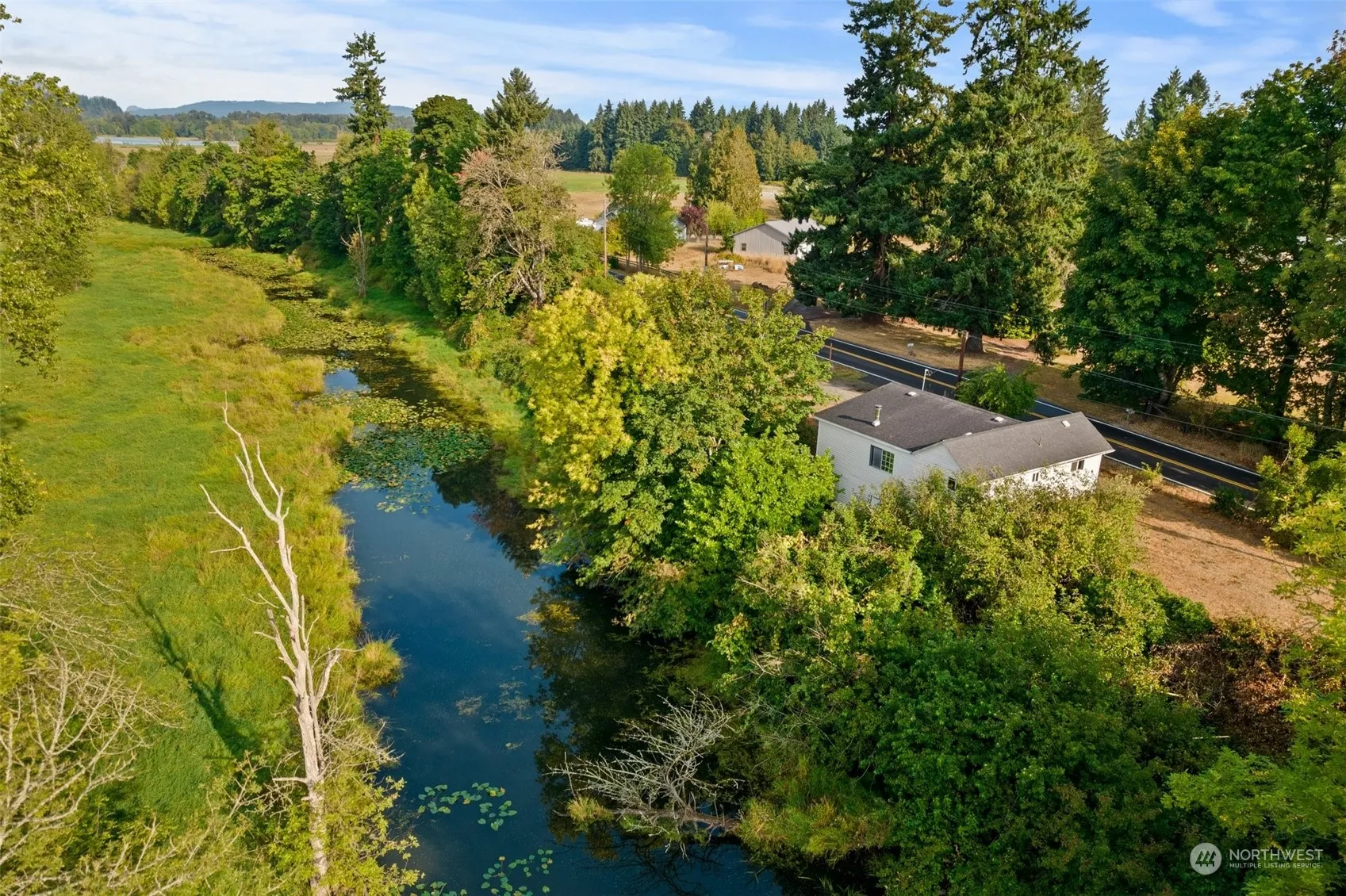 PRICE REDUCTION!!! A wonderful home on 13+ Acres. Endless views off the back of the property, from a creek, pasture land and hills. This home sits on a elevated plateau. 10 acres of pasture land is on a flood plain however is excellent pasture land. 2 separant tax parcels. Great location. Close to I-5 and outlet shopping. This home has many potential uses. Room for RV parking and additional out buildings.