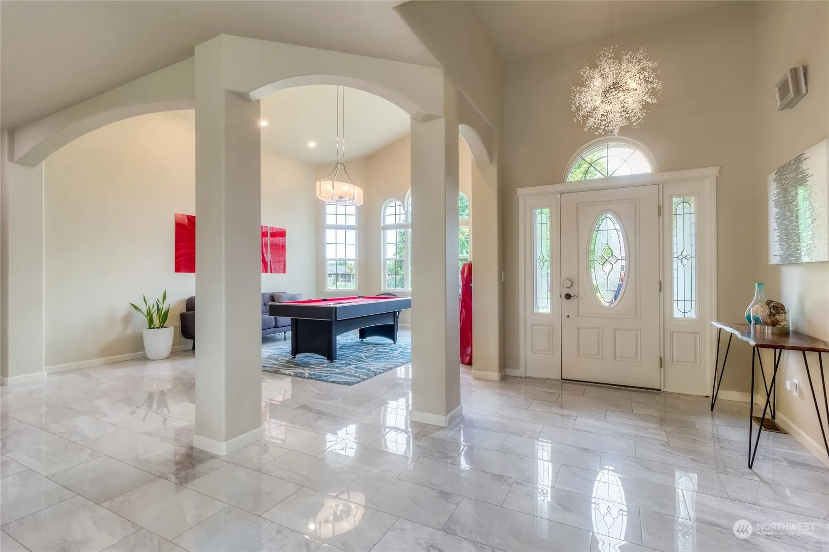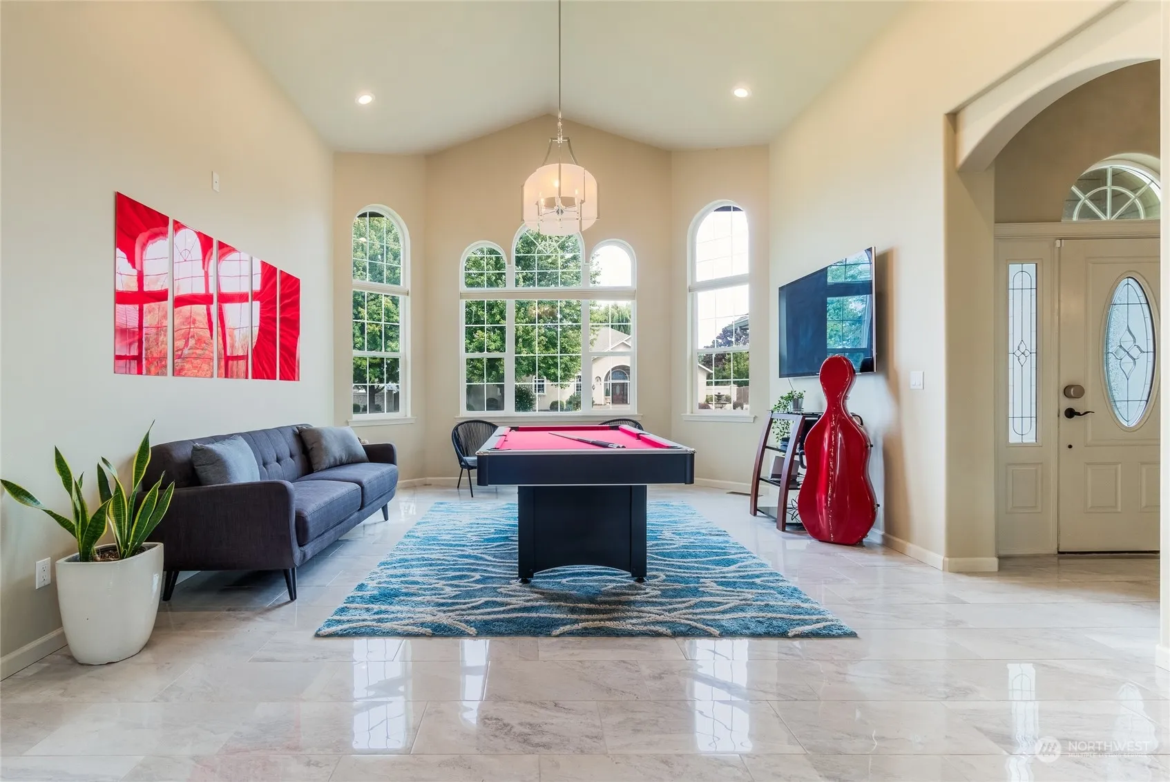 Welcome to your dream home! This stunning one-level residence is nestled on a spacious ½ acre corner lot on a quiet cul-de-sac. Meticulously updated in 2019, this home boasts new HVAC, light fixtures, granite countertops & marble floors that flow throughout the open-concept living spaces. Pamper yourself in the spa-like primary ensuite featuring a jetted tub, separate shower, and walk-in closet. Natural morning light pours into the kitchen & dining w access to a fully fenced 300sf of patio w a gas fire pit. For comfort & convenience, this “Smart Home” w Ipad for house apps has a spacious laundry & EV charging station in the oversized 3-car garage. Tasteful updates & prime location, make this your top choice to experience Luxury Living!