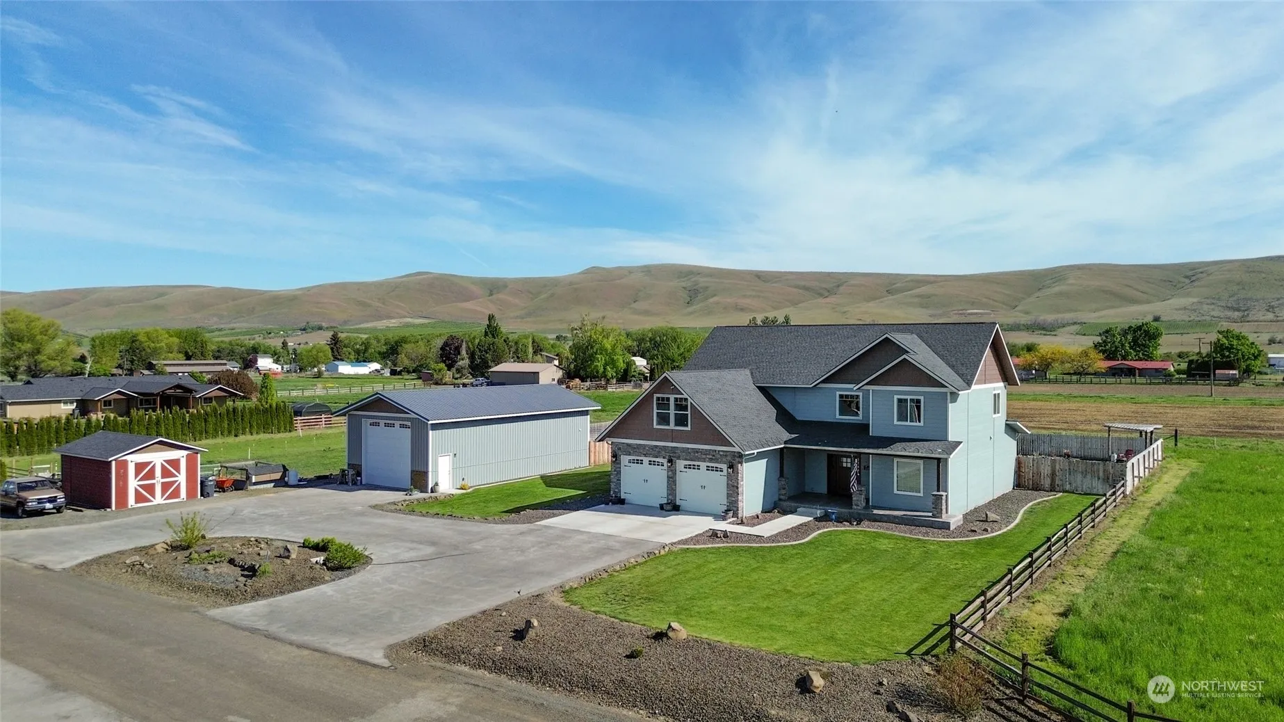 Welcome to peaceful living with the amenities and privacy you’ve been looking for! Situated on a well designed 2 acre parcel, you’ll find a 2017 custom built home, a large shop with full bathroom and room for all the toys and RV parking, hobby farm set up with garden area and large yard with outdoor living spaces. Upon entering the home, you’ll be greeted by an oversized stone fireplace and a living space that opens to the second story. You’ll love the chef’s kitchen with upgraded appliances and the primary sanctuary en suite with a soaking tub and walk in shower. Upstairs you’ll find three bedrooms, a bonus living space, cozy reading nook and a full bathroom with a second laundry. Contact your realtor to schedule your private showing!