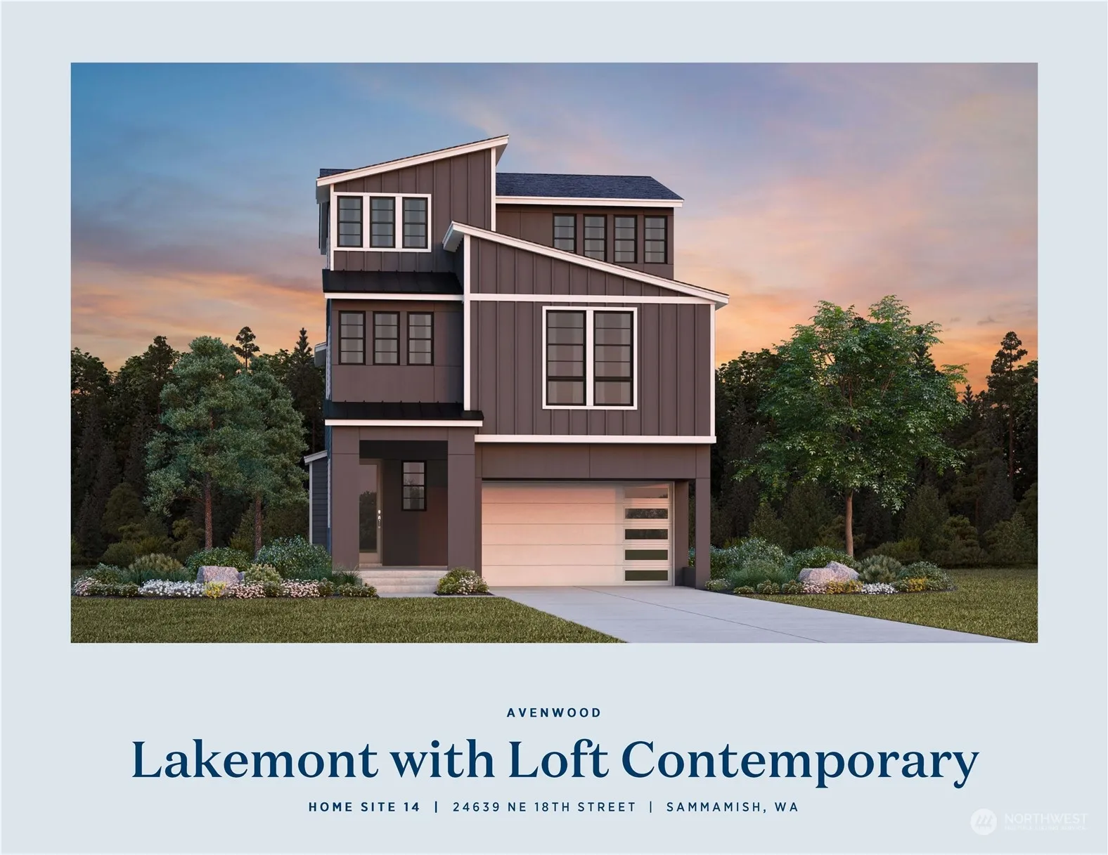 Final Opportunity! Ask about our interest rate buy down! Avenwood by Toll Brothers is a new 17 home community served by the acclaimed LK WA school district. This North facing Lakemont w/ Loft Contemporary features a welcoming foyer flowing to a spacious great room, dining area & desirable covered patio. Well-designed kitchen w/ large island, Jenn-Air appliances & plenty of counter & cabinet space. Primary bedroom offers huge walk-in closet w/ 5-piece ensuite. 3 secondary bedrooms on the second level, two w/ walk-in closets. Two lofts provides versatile entertaining options. Features 3 story open to below with plenty of windows bringing an abundance of light. Designer-appointed quick move in home that is loaded with over $112K in upgrades.