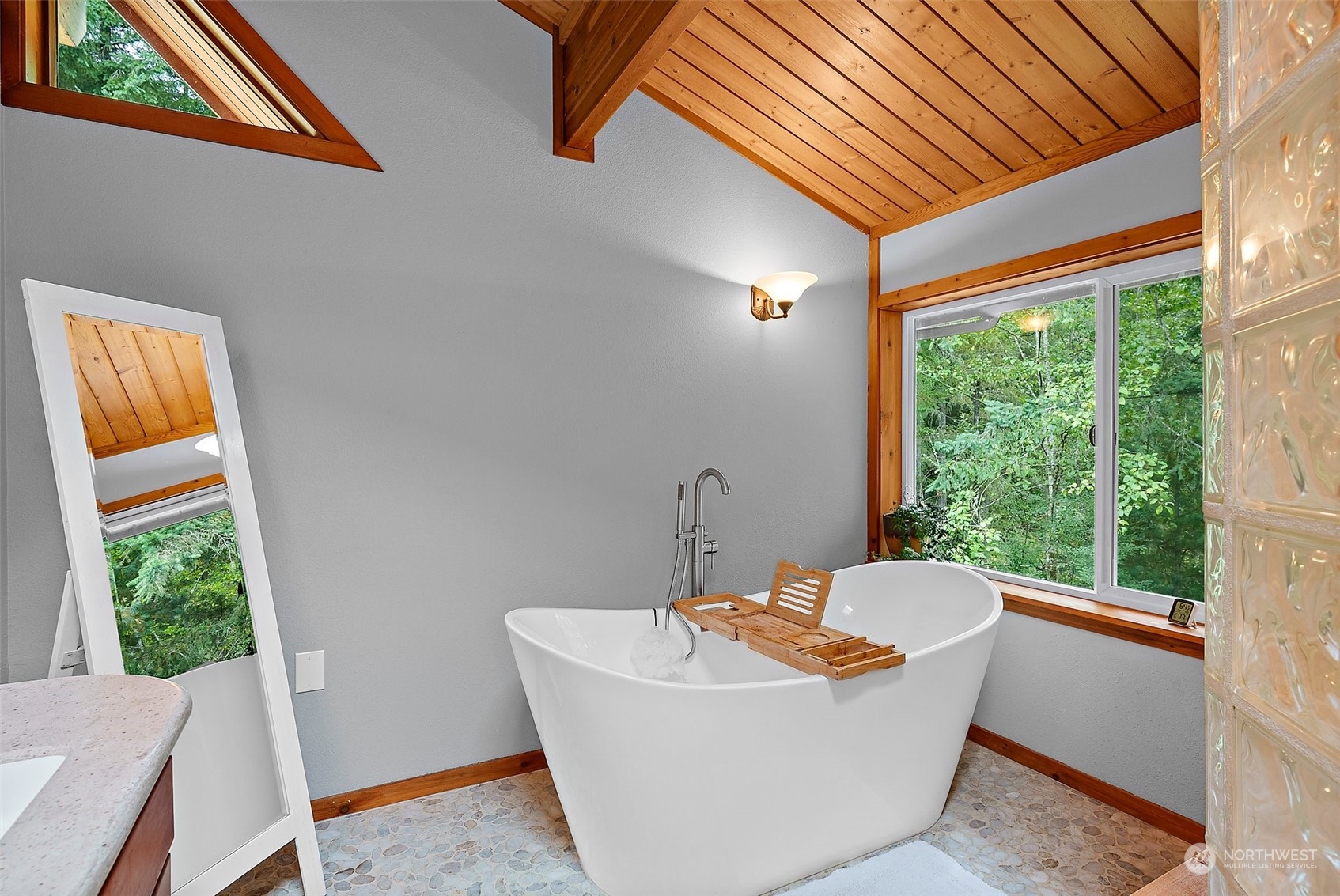 Live in harmony with the woods on over 2 acres in this Lindal Cedar home, where every window frames your very own wildlife sanctuary. Gated and private with a gracious tree lined driveway leading you to your very own zen home and hideaway. Wraparound Trex deck opens to your lofty, light filled great room and kitchen/dining area for maximum entertaining possibilities. Multiple outdoor garden areas and your own trails to explore your natural side, as well as a huge 3 car detached garage for all your toys and more. This 3BR, 2.5BA home offers a beautiful, flexible layout with abundant living space and a walk-in pantry. No sacrificing privacy for convenience though- this gorgeous property is mere minutes from shopping and the Southworth Ferry!